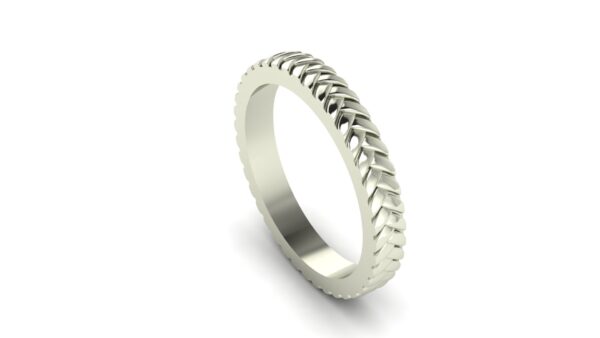 Are you looking for a Custom Braided Wedding Band? We can make it all! This one has a braided leather design going all the way around the ring. This does make it difficult to resize, but it can be done if it has to. It is simple an elegant. And not to mention, far more durable than a real leather ring! This one is 5mm wide, but we could go as narrow as 4mm and as wide as you like. It probably looks best at over 5mm wide though.