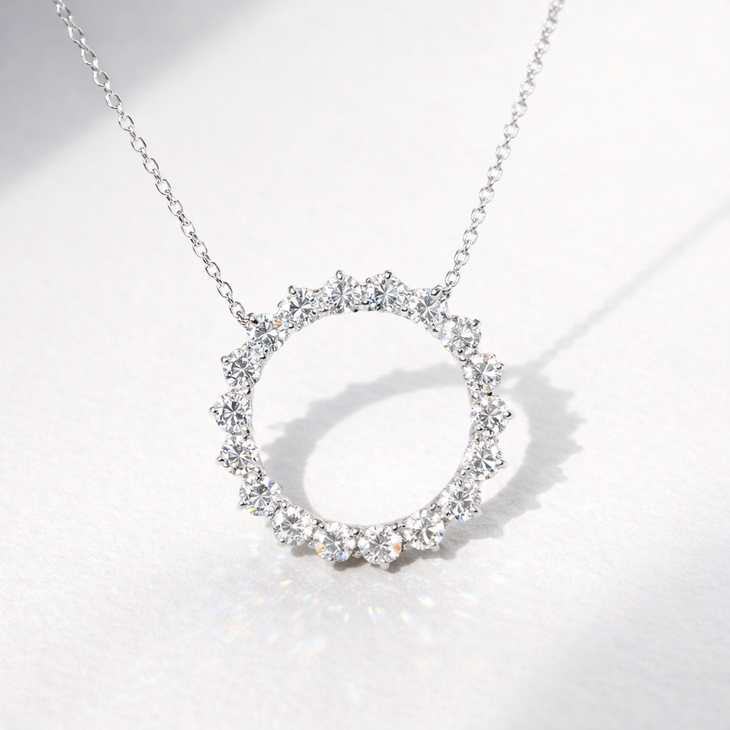 A moissanite circle pendant succeeds because it strips everything down to what matters. The circular shape carries a clear message continuity, balance, and permanence but the real impact comes from how the stone performs. Moissanite doesn’t fade into the background. It reacts to light constantly, keeps its brilliance in different settings, and gives even the simplest design a sharp, noticeable presence. When the cut is right and the proportions stay clean, this piece doesn’t just look good it holds up, every single day.