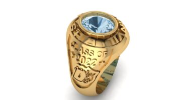 This is a Panther High School Class Ring design we created for high school student who (not uncommonly) wasn’t happy with what Josten’s or Balfour had to offer. It was mainly their pricing that was distressing. We see it a lot and totally understand it. Who wants a ring to spend $650 on a ring that their kid might or might lose as soon as they got to college? Plus, the design options can leave a lot to be desired. Make a Custom Panther High School Class Ring that is your own!! This one had an 10x12mm oval Aquamarine in the center. The sides have the mascot twice, year, and name. However, we can make these in any way you want. This is just how one person wanted his to be.