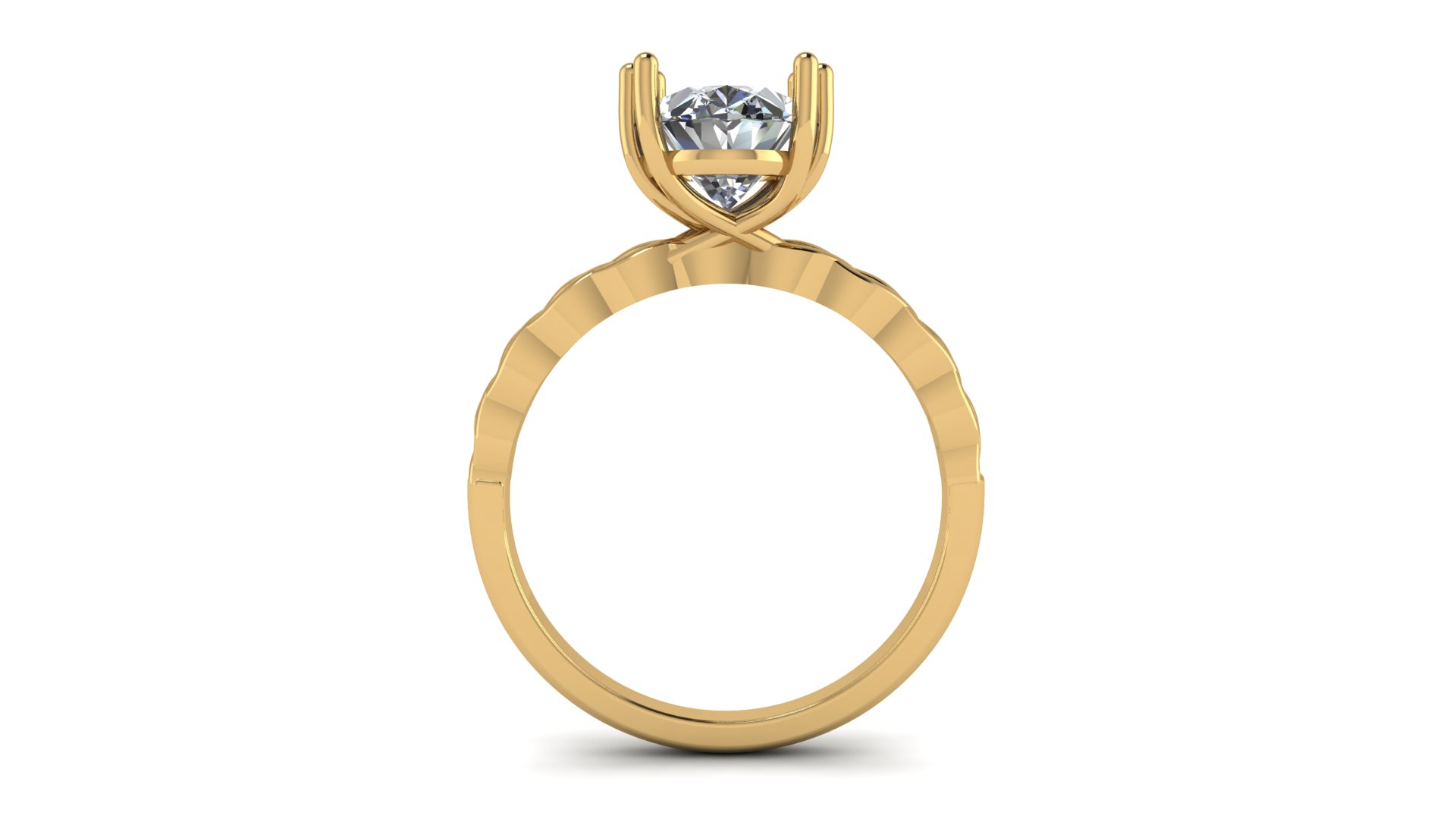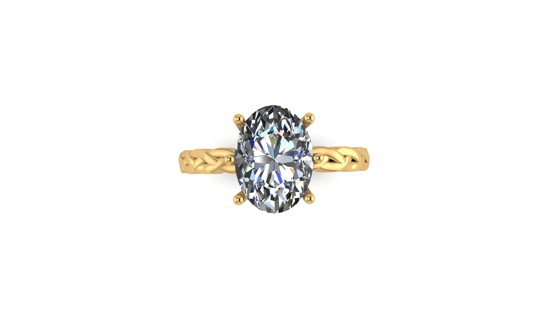 This 6 prong Woven Oval Solitaire Engagement Ring is one of many rings with this type of band. It has 3 pieces that are woven and end up as prongs on the other side of the stone. This creates the crossover effect loved by so many. If you have another woven pattern you like, send it over and we will see if we can use it. We could also make it with 4 prongs instead of 6. And, if you wanted to add some sparkle, adding stones to the belt would make for a beautiful hidden halo engagement ring. But we are just throwing out ways to change the ring.